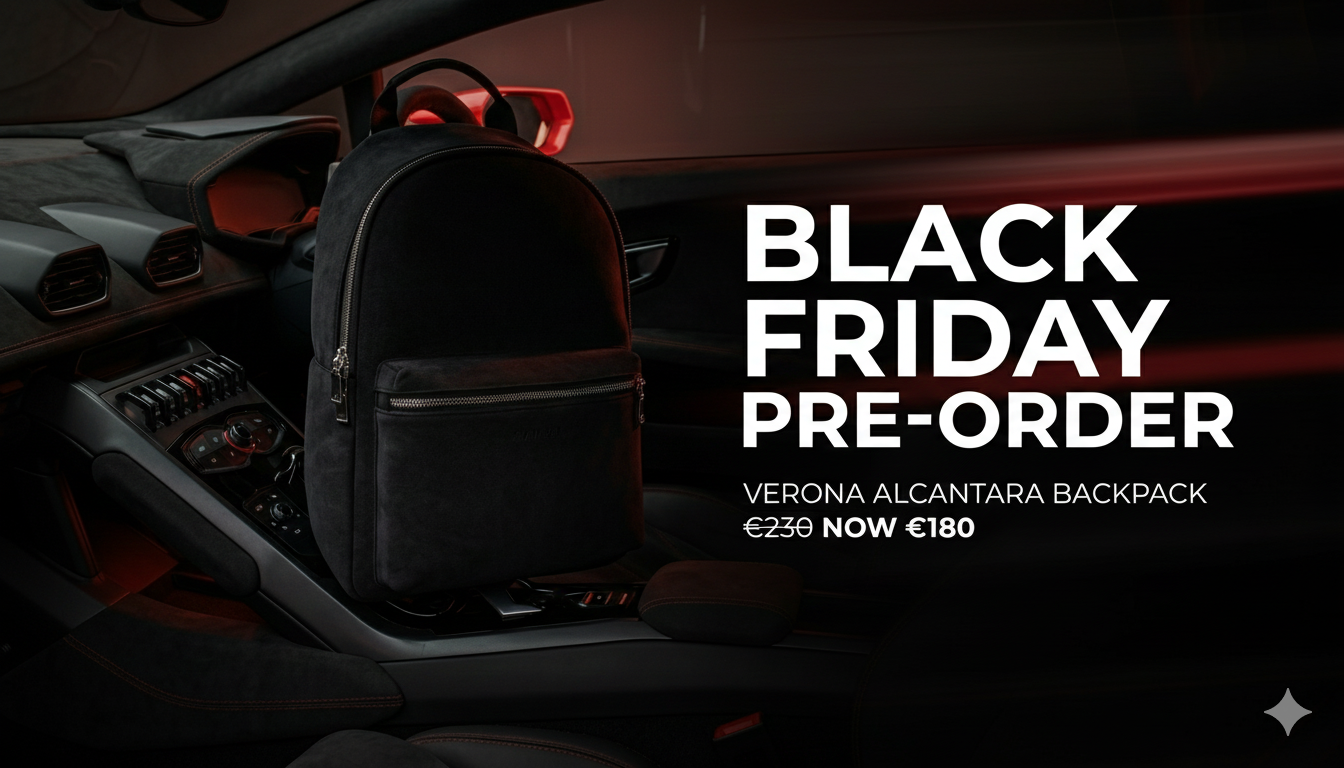 Ontdek onze reisset: de Milano Washbag en Verona Backpack in Alcantara®. Perfect voor trips of dagelijks gebruik — nu als set met 15% korting.